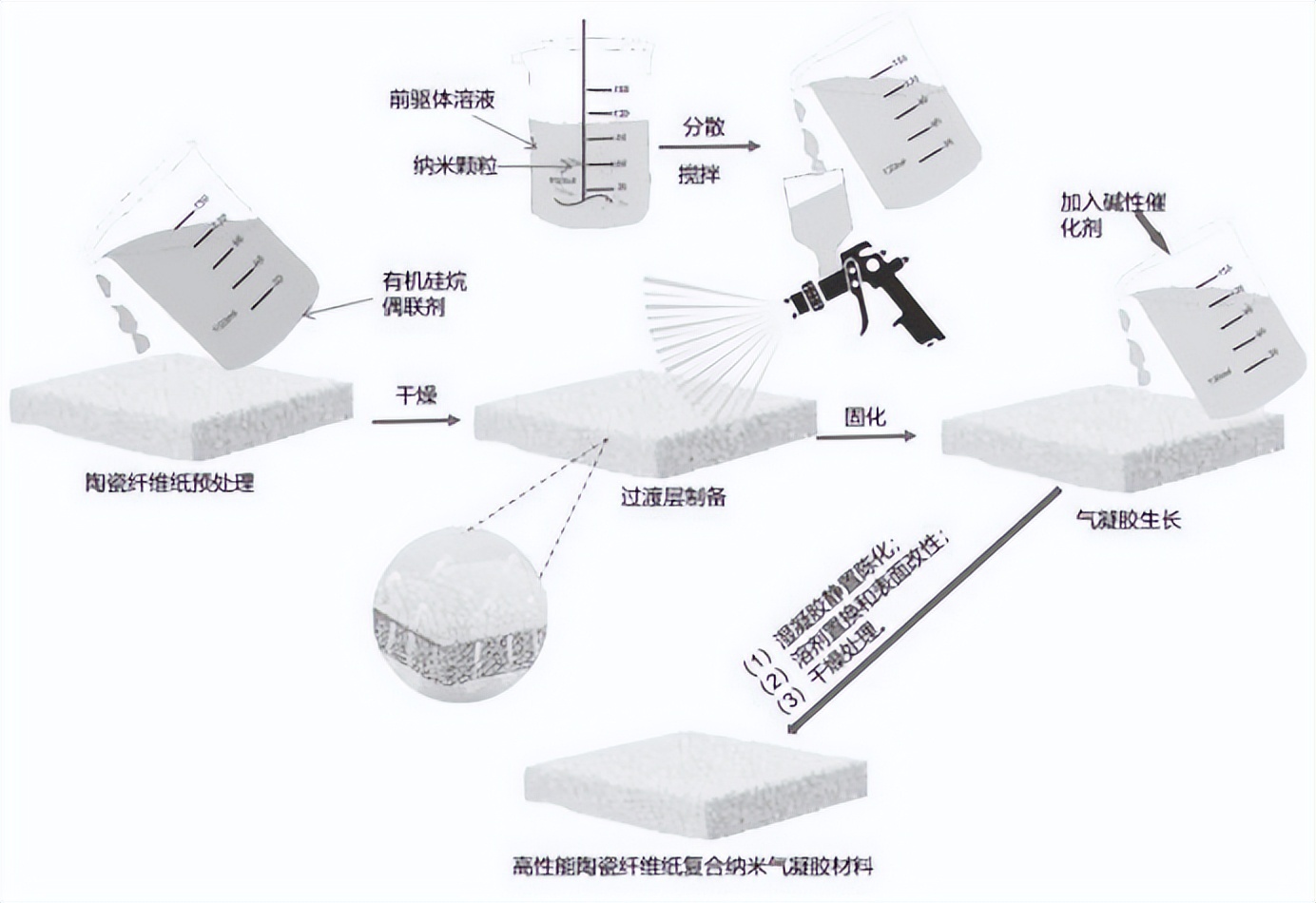 在制备陶瓷纤维纸的过程中,需要选择适当的纤维材料、粘合剂和制备工艺,以确保纸的强度和均匀性。在复合过程中,需要将气凝胶均匀地分散在陶瓷纤维中,并经过热处理等工艺步骤,使气凝胶与陶瓷纤维材料紧密结合在一起。