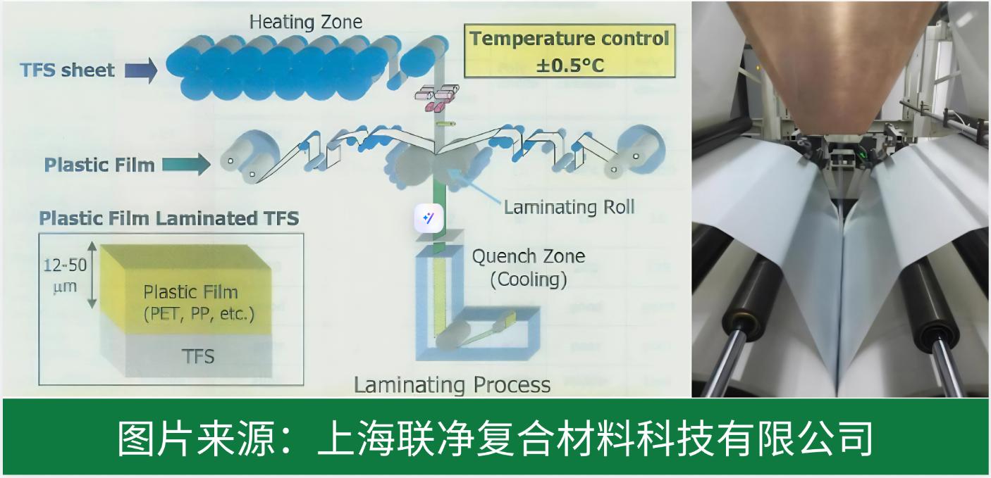 均温加热、稳压复合、高速急冷,覆膜铁、覆膜铝、生产设备、工艺具有相似与同源性