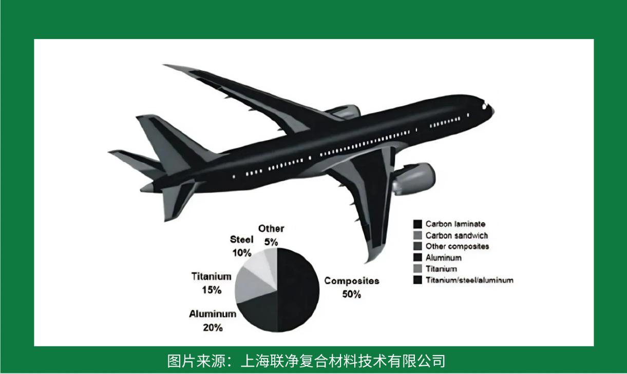 普通钢的密度约 7.8g/cm³,而 CFRP 仅 1.63g/cm³,相当于拿一瓶矿泉水的重量,扛起 10 瓶水的压力。以常用的 T700 级碳纤维为例,其拉伸强度超 3500MPa,是普通钢的 10 倍以上。最直观的例子是飞机:波音 787 用 CFRP 做机身部件,比传统铝合金轻 20%-30%,一趟航班就能省几十吨燃油;新能源车车身用 CFRP,车重降 10%,续航能多跑 5%,相当于多跑 20-30 公里(按 400 公里续航算)。
